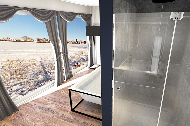 • VIGOUR individual Pendelttür für Nische, ESG klar, PflegePlusXtra, chrom, inkl. Aufmaß und Montage